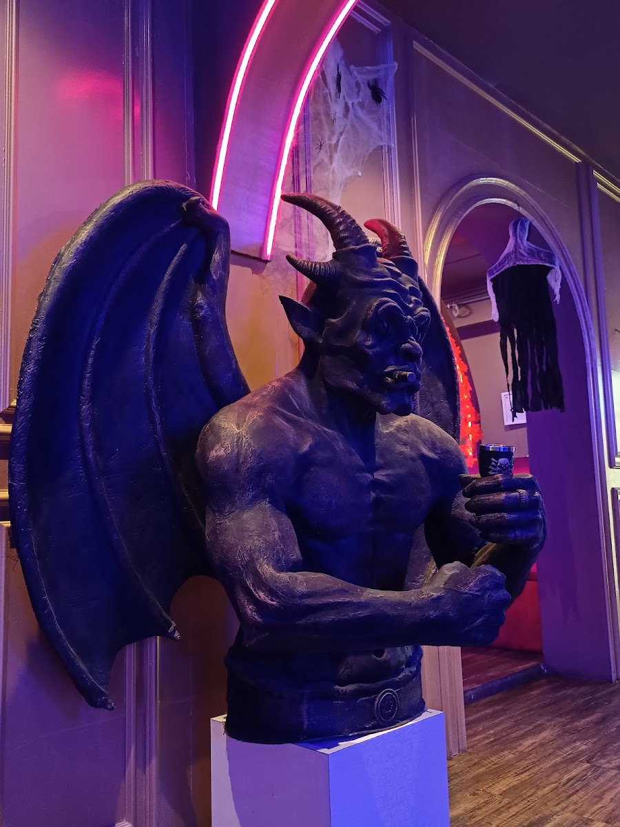 As you step inside, you're greeted by an eclectic decor that embraces a heaven and hell theme, enveloping you in a kaleidoscope of colors and mood-setting lights. The atmosphere is inviting, making it a perfect spot for casual hangouts with friends, family gatherings, or even a cozy date night. The cafe's thoughtful initiatives for female hygiene care further add to the welcoming vibe, making every guest feel respected and valued.